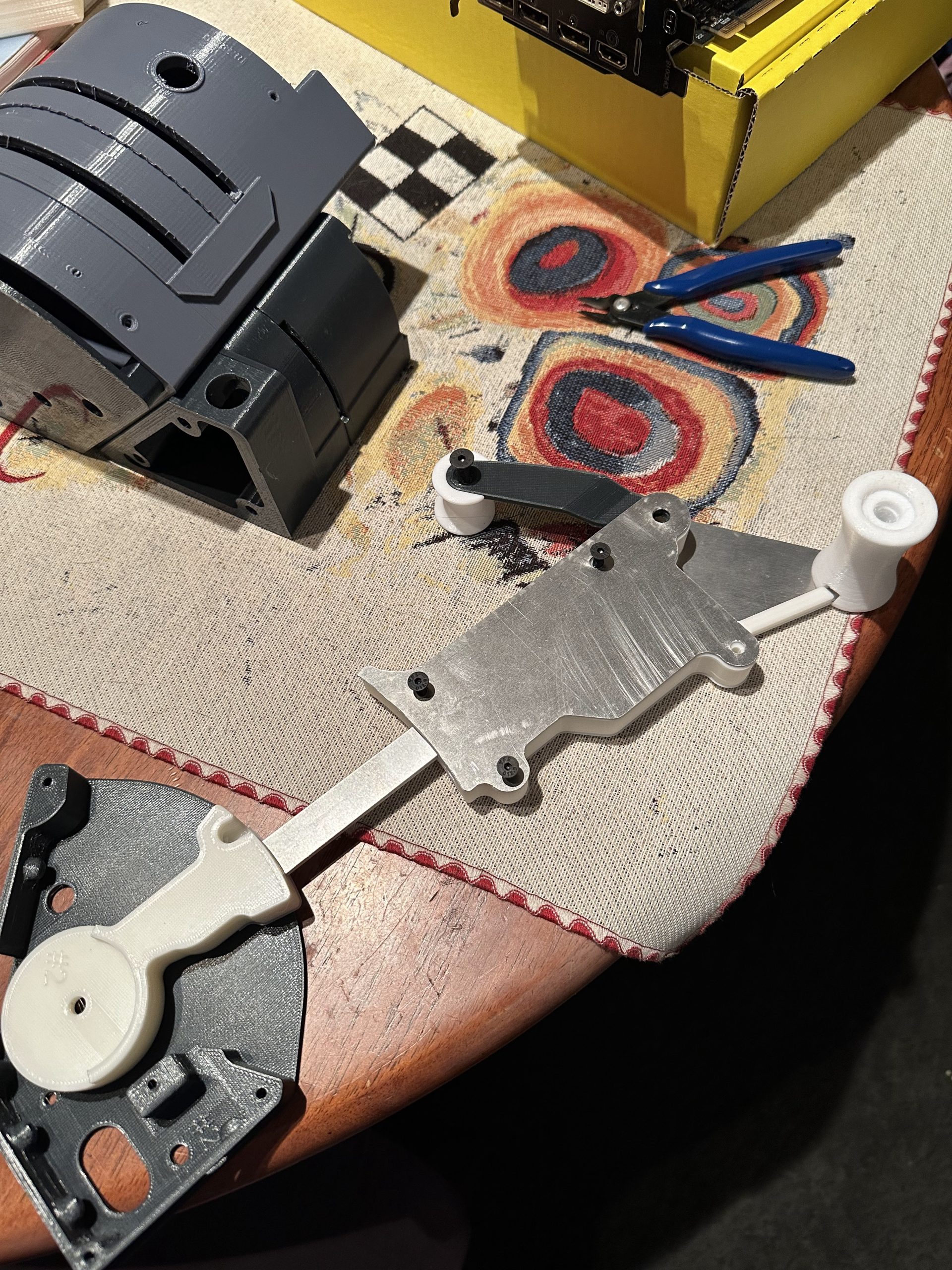 I’ve modified a few parts, switching to water-jet cut aluminium for some of the bits which I felt would benefit from some more structure.