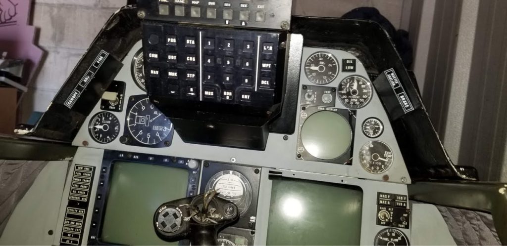 Lots of old tech in here, given that they were built in the early 1990’s, CRT screens for the DU’s and RWR, and lots of nice mil-spec switches. This is going to be a long-term project, starting with restoration of the shell which is showing the bumps and bruises of being shipped across the globe.