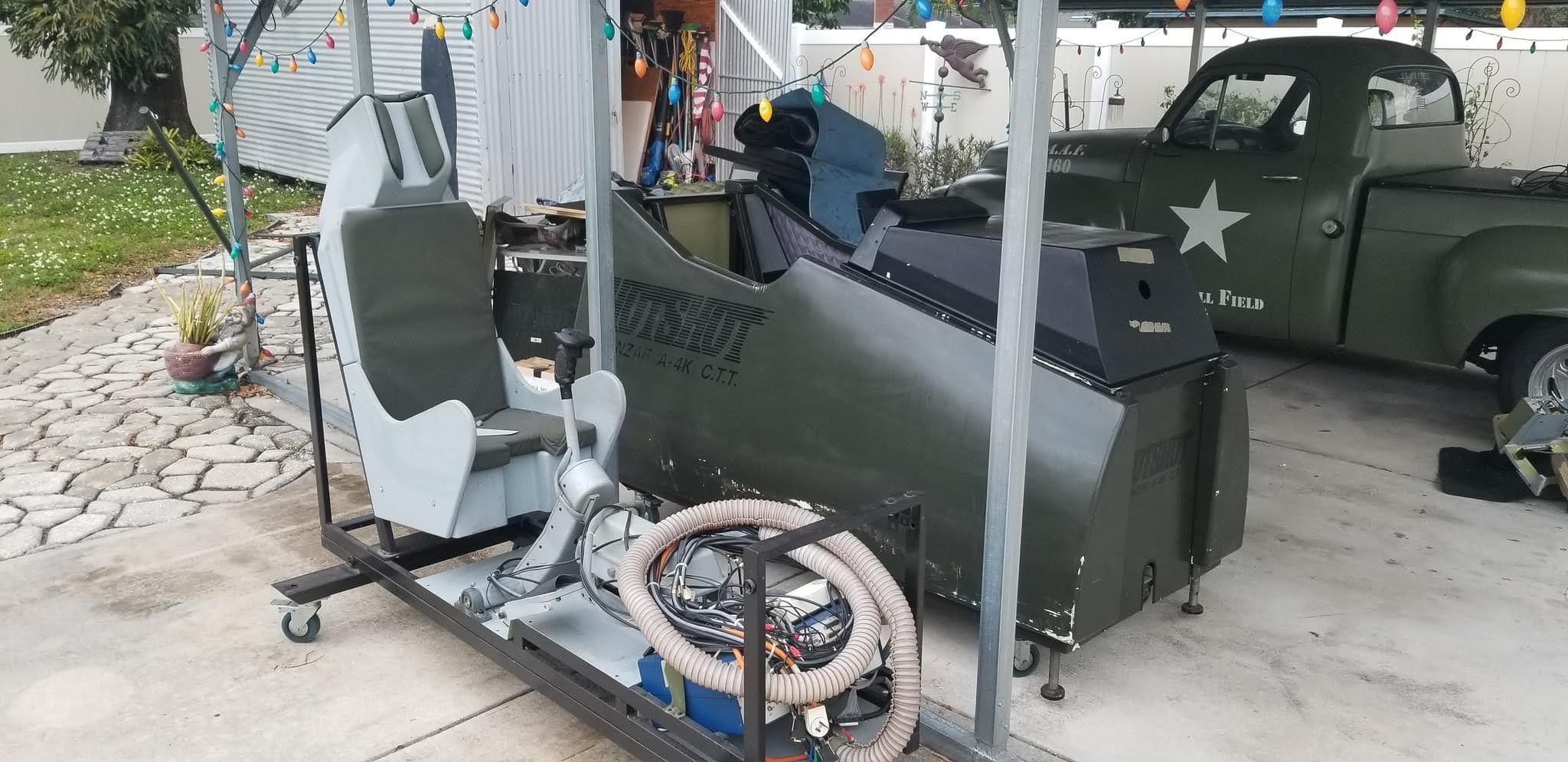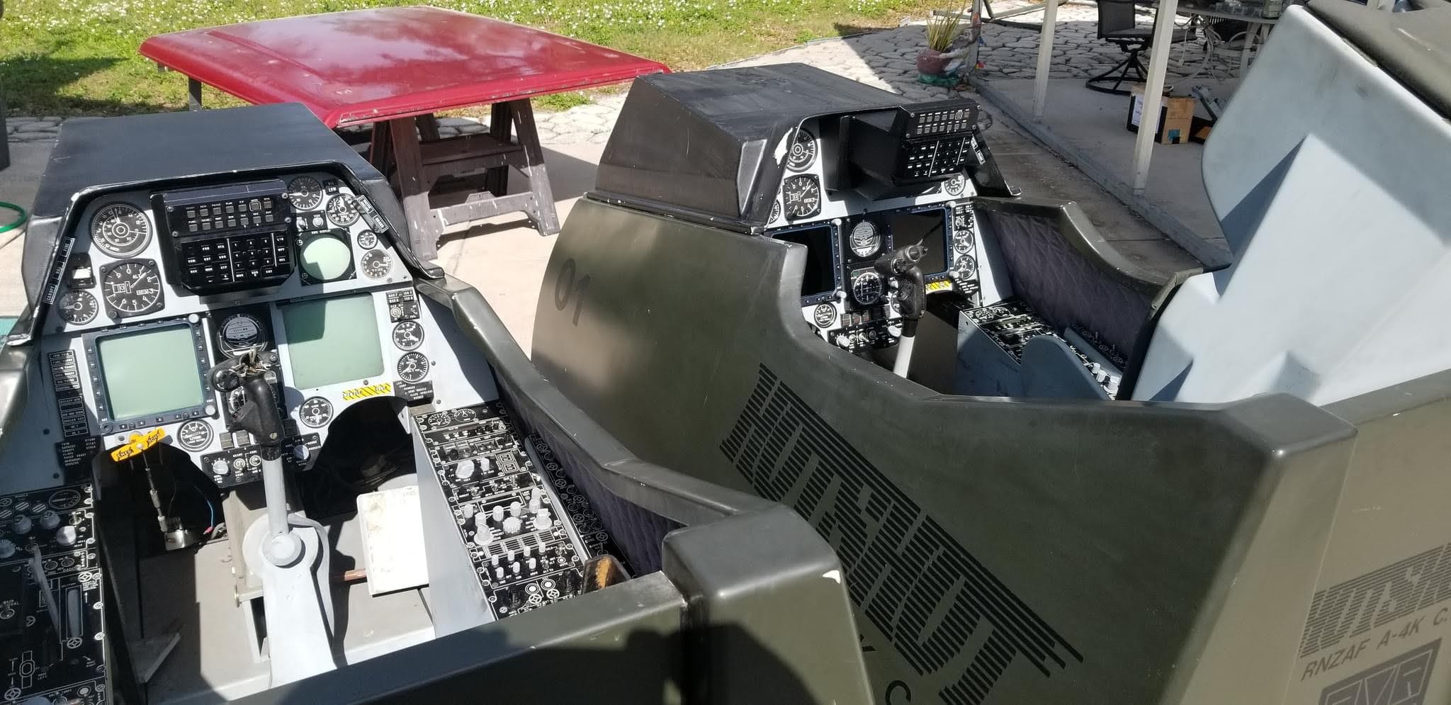 The Ejection Seat is real, out of an A-7, but similar to the A-4 seat. The original Sims had fibreglass seats.