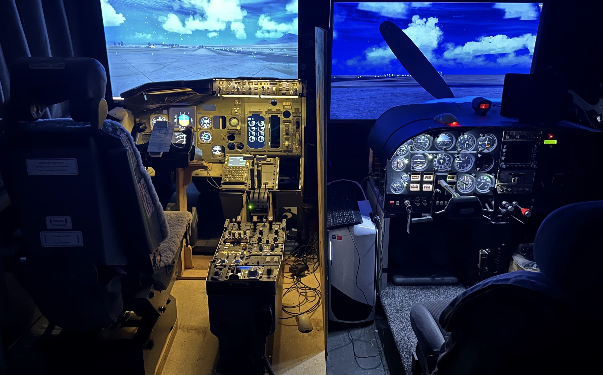 Last year I had the chance to acquire a beautifully made Cessna 177rg simulator, built with a lot of real aircraft parts, control loading and a ton of clever electronics inside.