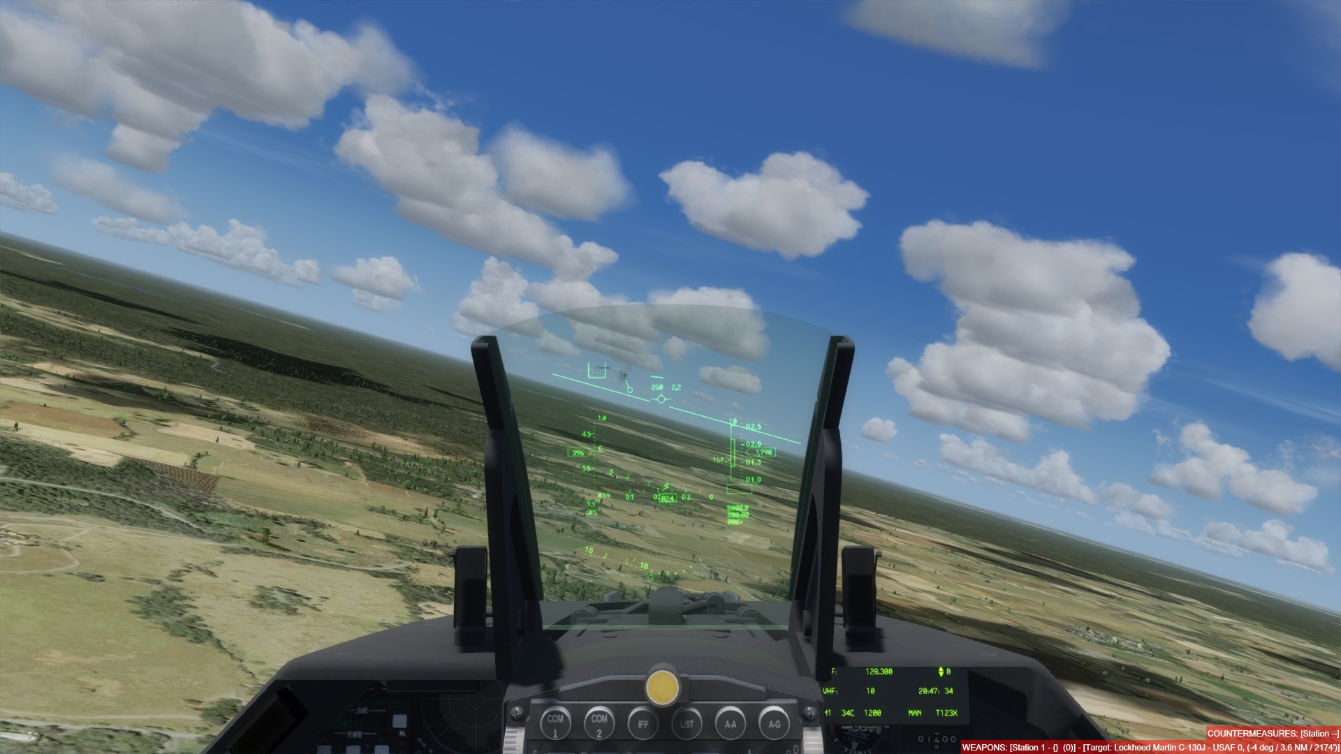 Here we have a quick capture from last nights mission. If you look closely you will see the Target Designator box locked on to Nathan’s C-130 which has smoke trailing from it after being hit in the No.2 engine by a Sidewinder missile….